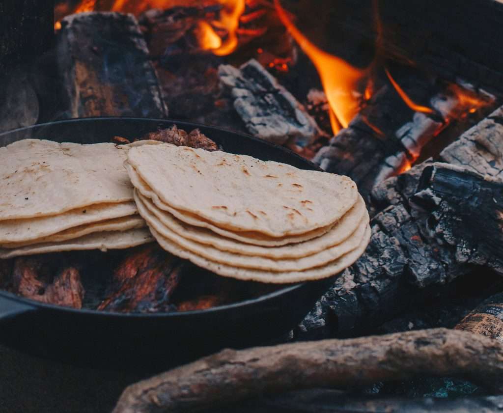 • Directions: Place a tortilla on a grate or pan over the campfire. Add cheese and your choice of chicken or chilli. Top with another tortilla and cook until the cheese is melted and the tortillas are crisp.